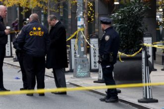 „UnitedHealthcare“ (UHC) sveikatos draudimo įmonės ženklai 2023 m. liepos 19 d. rodomi…