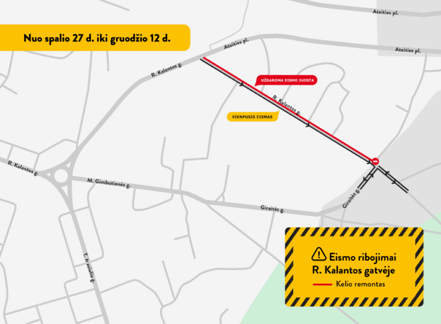 Kauno miesto savivaldybė Dėl darbų R. Kalantos gatvėje – eismo pokyčiai