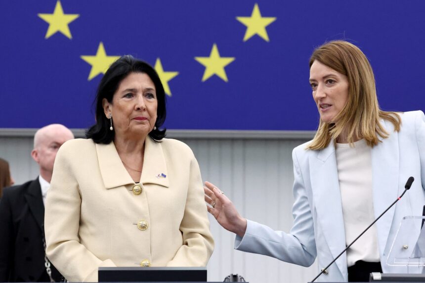 Priimtame rezoliucijoje EP atsisako pripažinti Gruzijos svajonių partijos valdžią po 2024 m. Spalio 26 d. Apklijuotų parlamentinių rinkimų, įskaitant naująjį prezidentą, įskaitant naująjį prezidentą Mikheil Kavelashviliir ragina tarptautinę bendruomenę prisijungti prie Gruzijos valdančiojo elito boikoto. EP nariai ir toliau pripažįsta Zurabishvili kaip teisėtą Gruzijos valstybės vadovą.