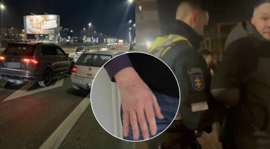 Į avarijos vietą atskubėjęs moters vyras ir išgirdęs, jog žmona nubausta, surinkdamas įspėjamuosius ženklus apie buvusią avariją nesuvaldė emocijų.